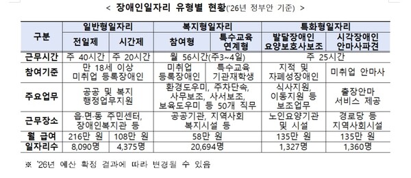 장애인일자리 유형별 현황(’26년 정부안 기준).ⓒ보건복지부