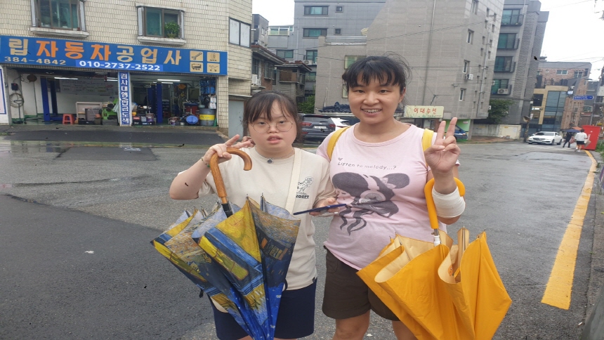 탈시설지원사업 '내가 만드는 오늘! 그리고 내일!' 7월 18일 김*영 참가자와 이마트 장보기 체험을 진행하였다. 7월 26일 조*선 참가자와 이마트 장보기 체험을 진행 하였다. 8월 6일 이*원 참가자와 함께 다움장애아동센터에서 유리벽에 부칠 글라스데코를 만들었고, 감정카드를 통해 참가자의 감정을 표현하도록 하였다.