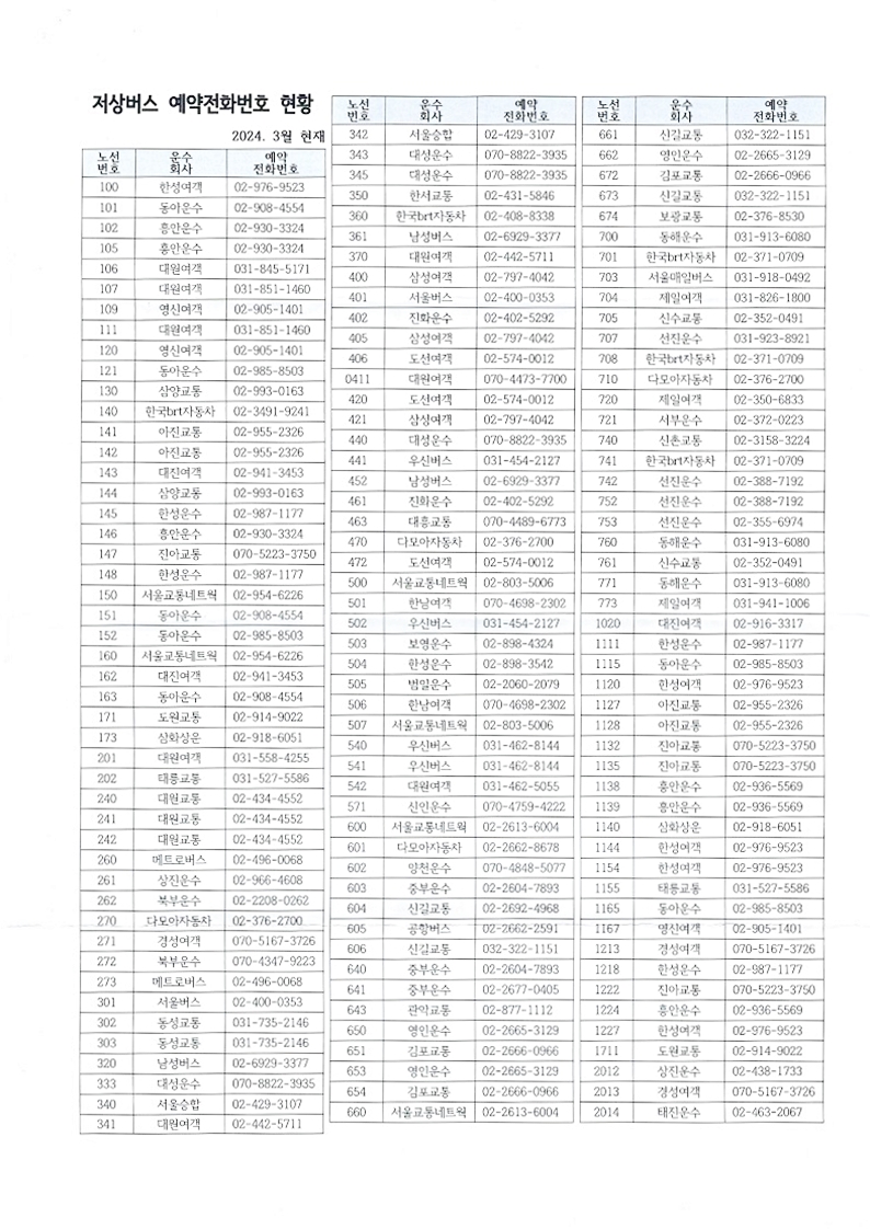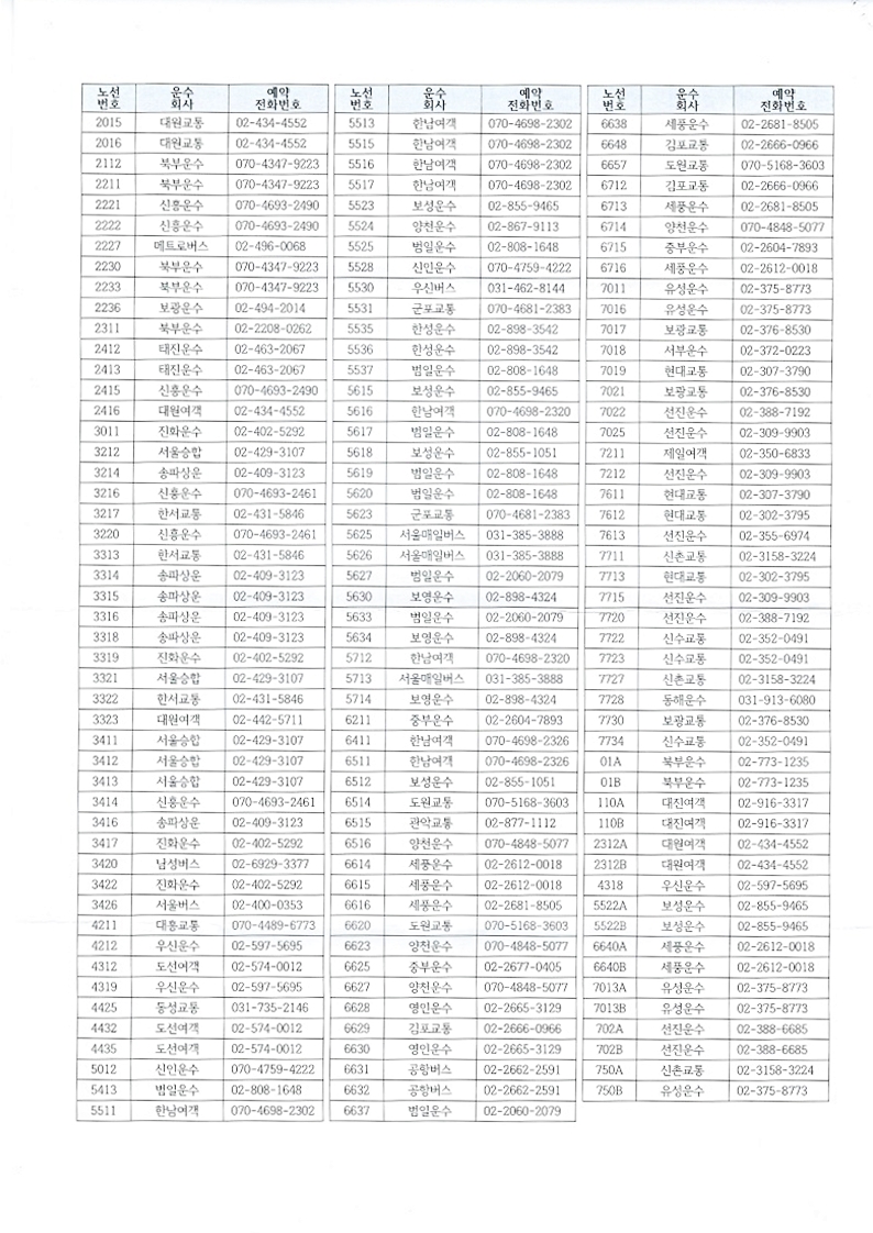 ▼ 저상버스 예약전화번호 현황
