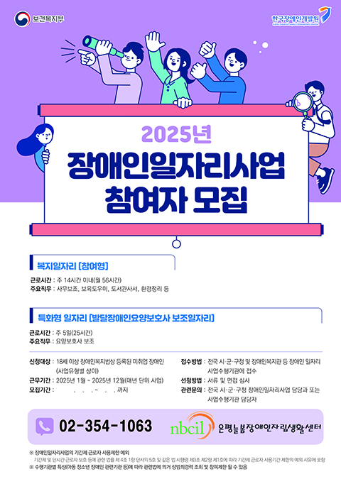채용공고 운영지원팀 2025-10-13 99[추가모집] 2025년도 복지일자리(참여형) 참여자 1명 모집 안내(10/27월 까지)