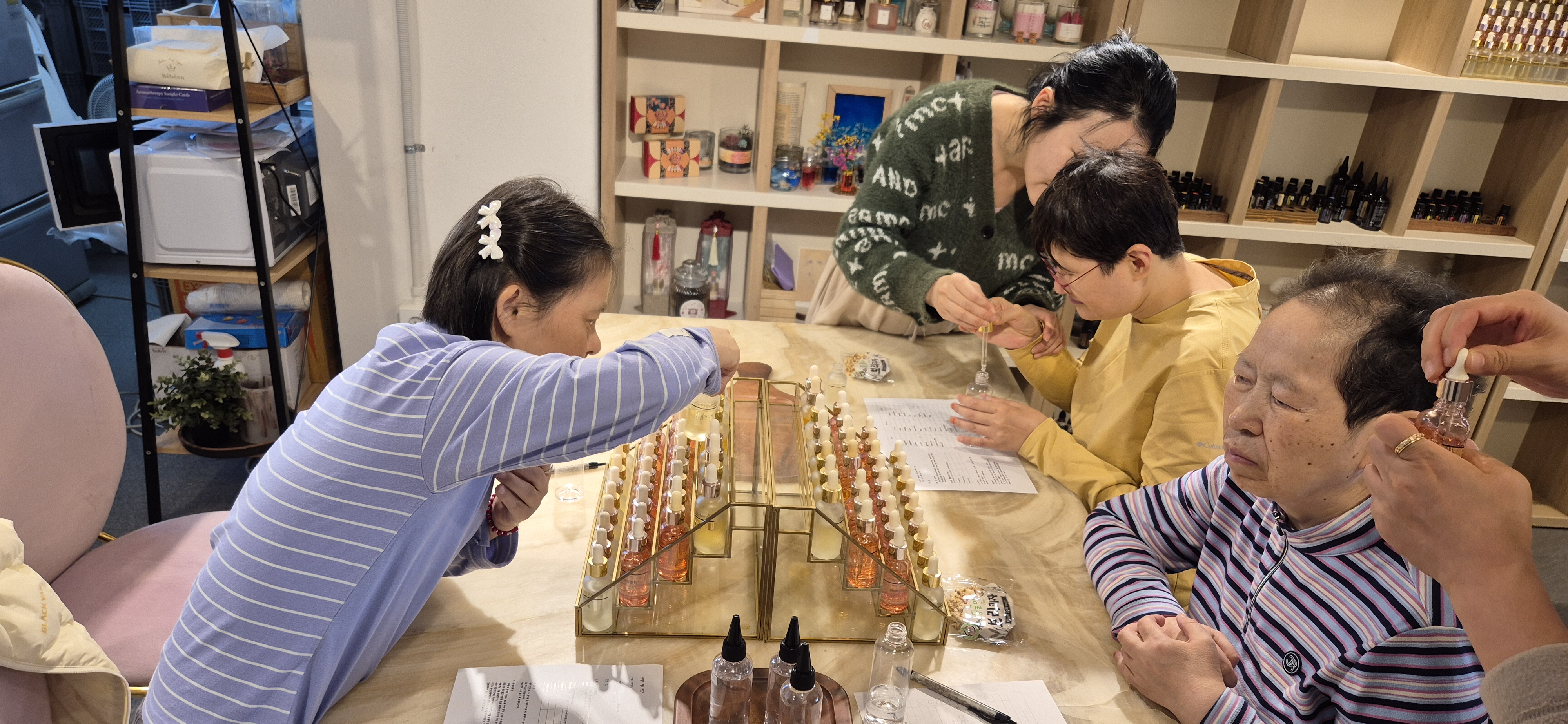 지역사회 외부활동으로 10/15(목)에는 요리강습(스테이크, 파스타 만들기), 10/22(수)에는 나만의 향수를 만들었습니다.