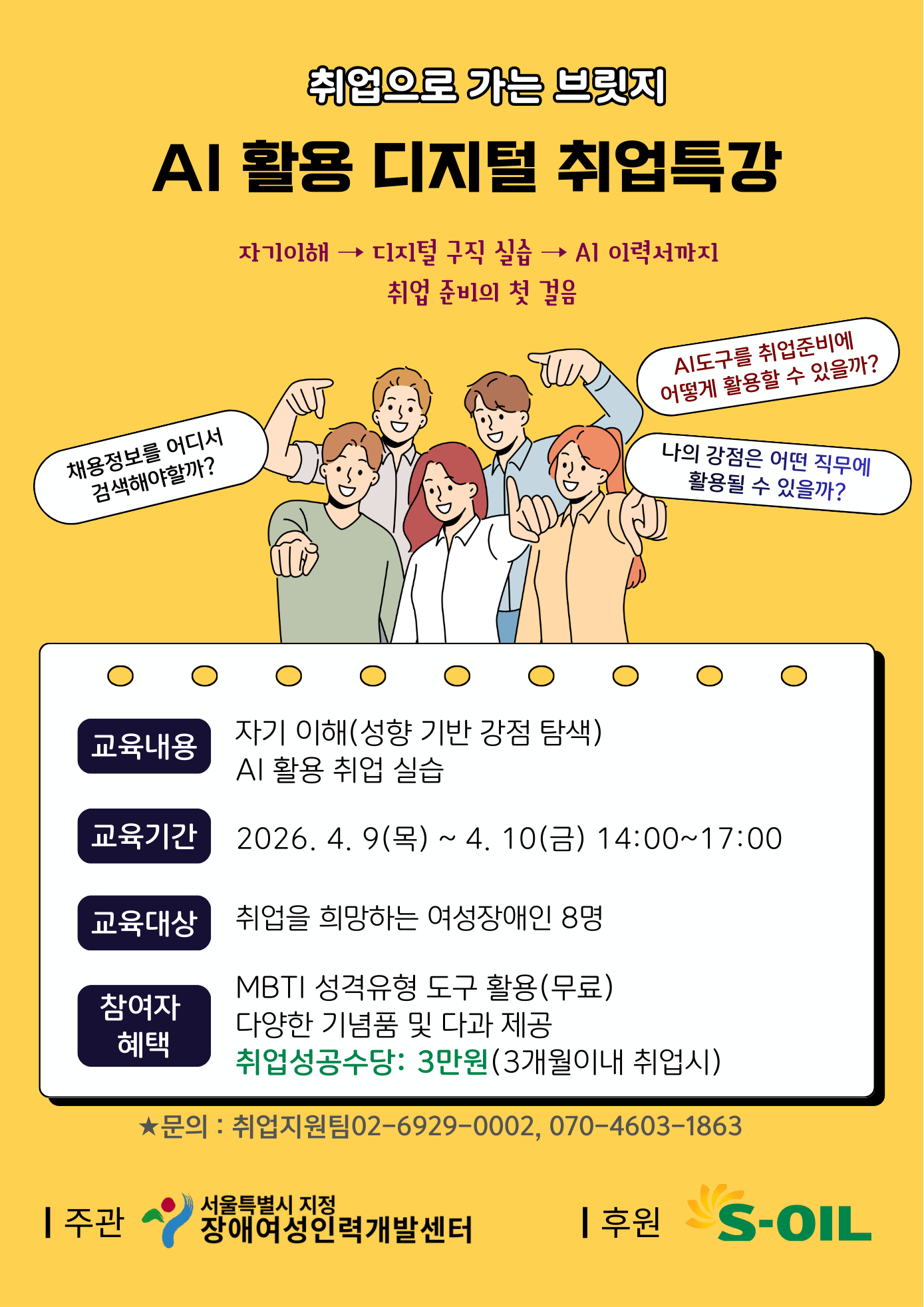 1)유선 또는 방문신청 (문의: 취업지원팀 02-6929-0002)