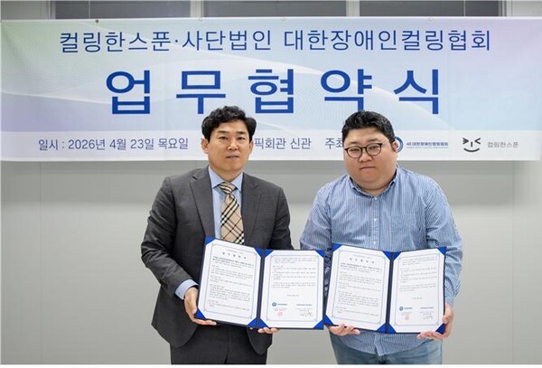 사단법인 대한장애인컬링협회는 컬링 전문 플랫폼 ‘컬링한스푼’의 운영사인뉴웨이브와 23일 오후 서울특별시 송파구 올림픽회관 신관 회의실에서 업무협약을 체결했다.